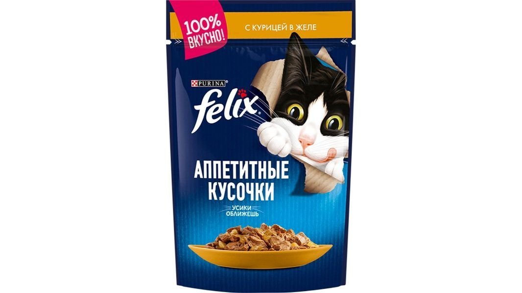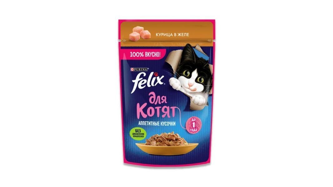 Корм влажный Felix аппетитные кусочки с курицей в желе для котят 75 г