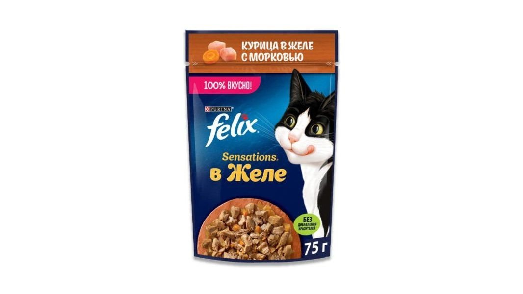 Корм влажный Felix Sensations с курицей в желе с морковью для кошек 75 г