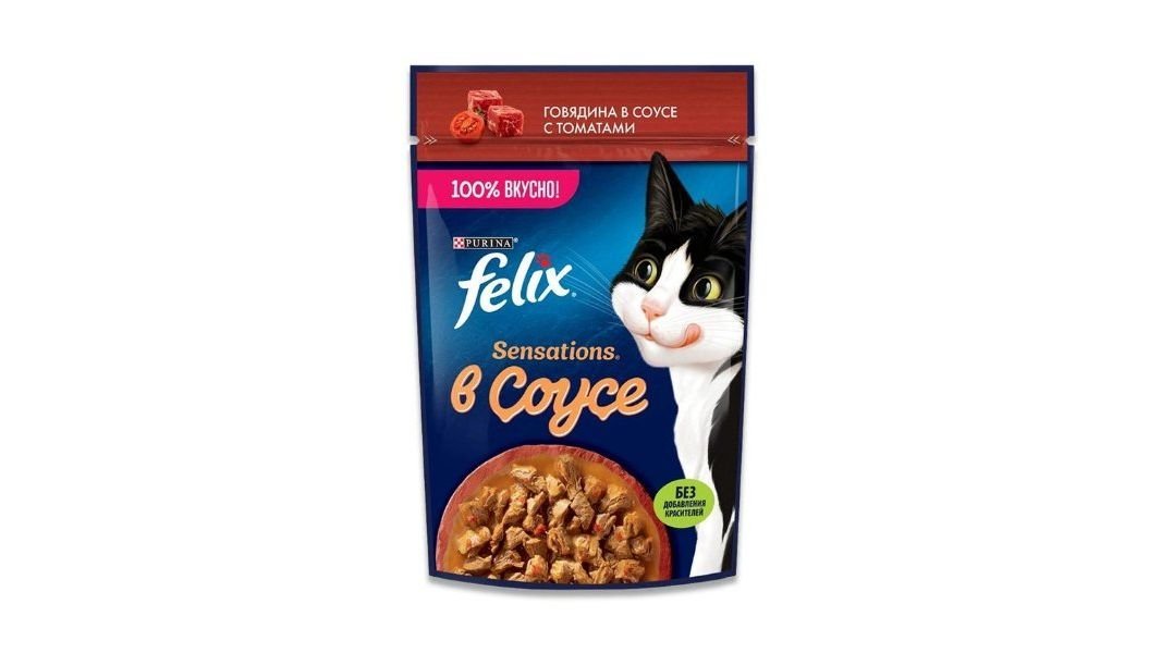 Корм влажный Felix Sensations с говядиной в соусе с томатами для кошек 75 г