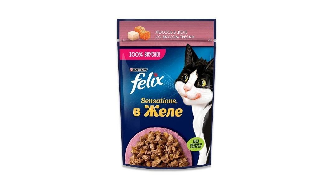 Корм влажный Felix Sensations с лососем в желе трески для кошек 75 г