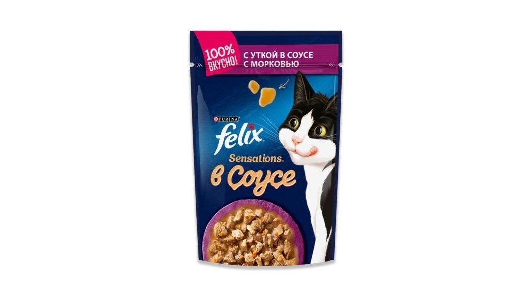 Корм влажный Felix Sensations с уткой в соусе с морковью для кошек 75 г