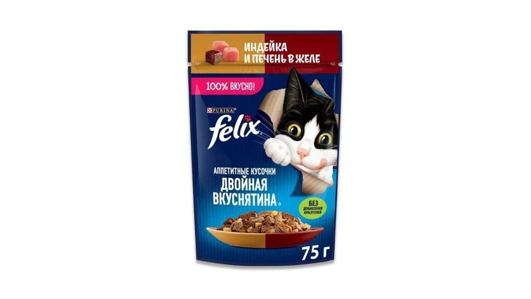 Корм влажный Felix двойная вкуснятина с индейкой и печенью для кошек 75 г