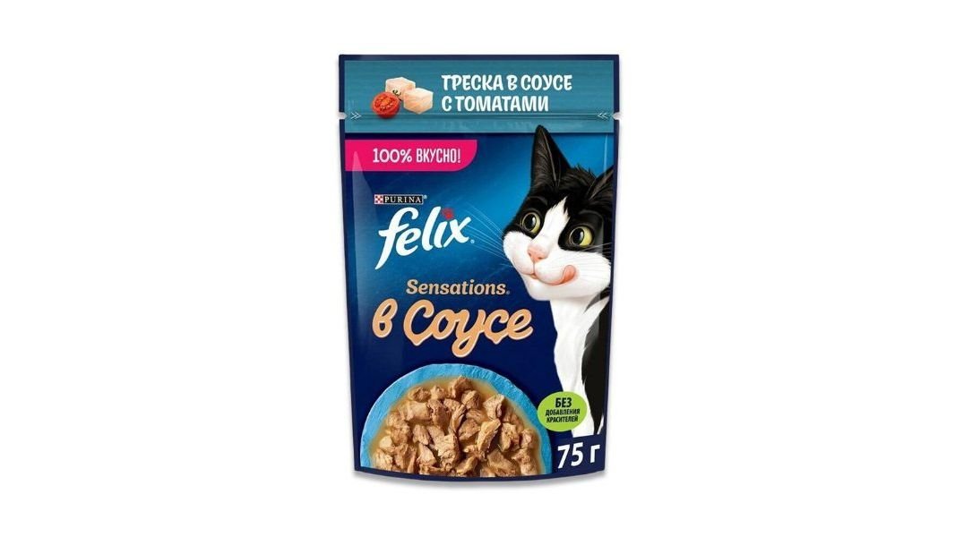 Корм влажный Felix Sensations с треской в соусе с томатами для кошек 75 г