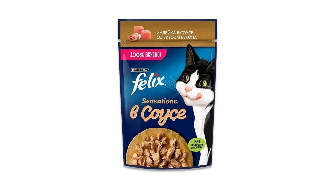 Корм влажный Felix Sensations с индейкой в соусе со вкусом бекона для кошек 75 г