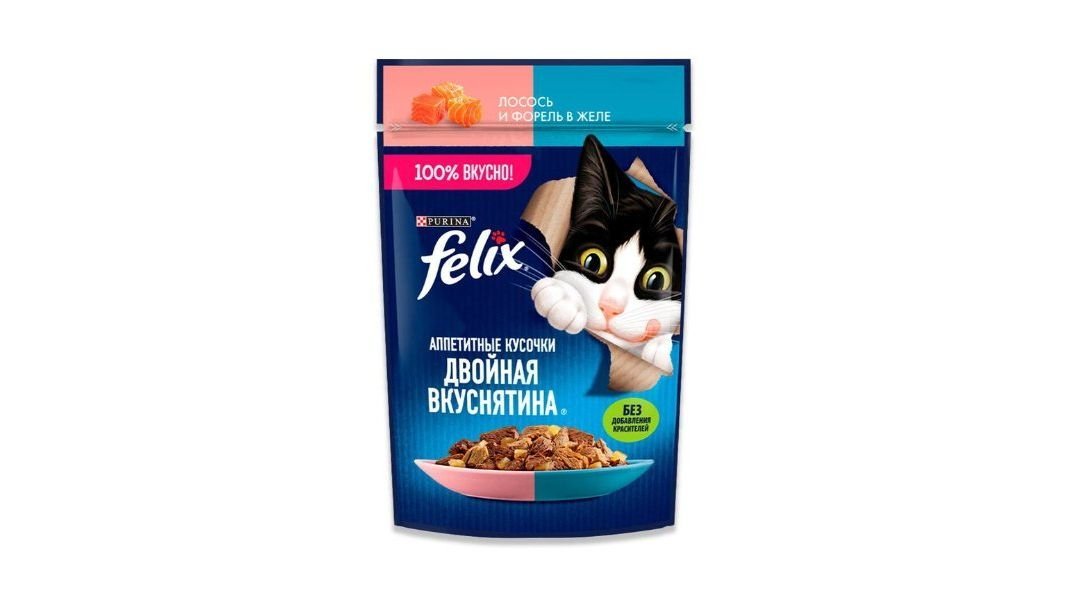 Корм влажный Felix двойная вкуснятина с лососем и форелью для кошек 75 г