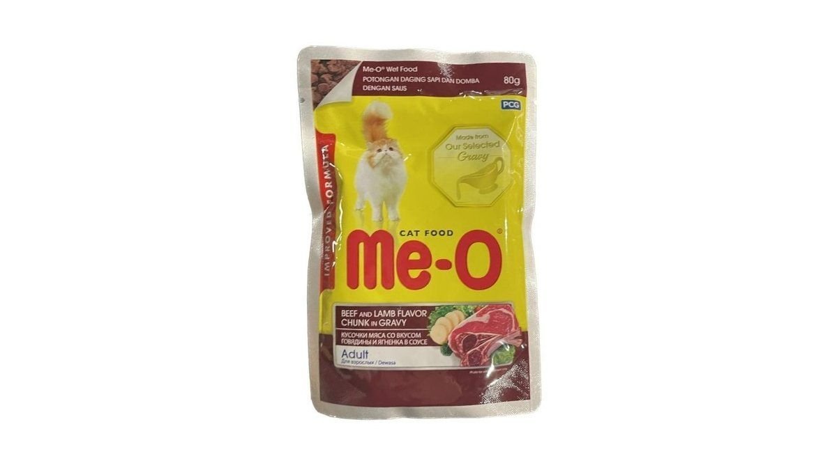 Me-O Для кошек, кусочки мяса со вкусом говядины и ягненка в соусе, 80 г