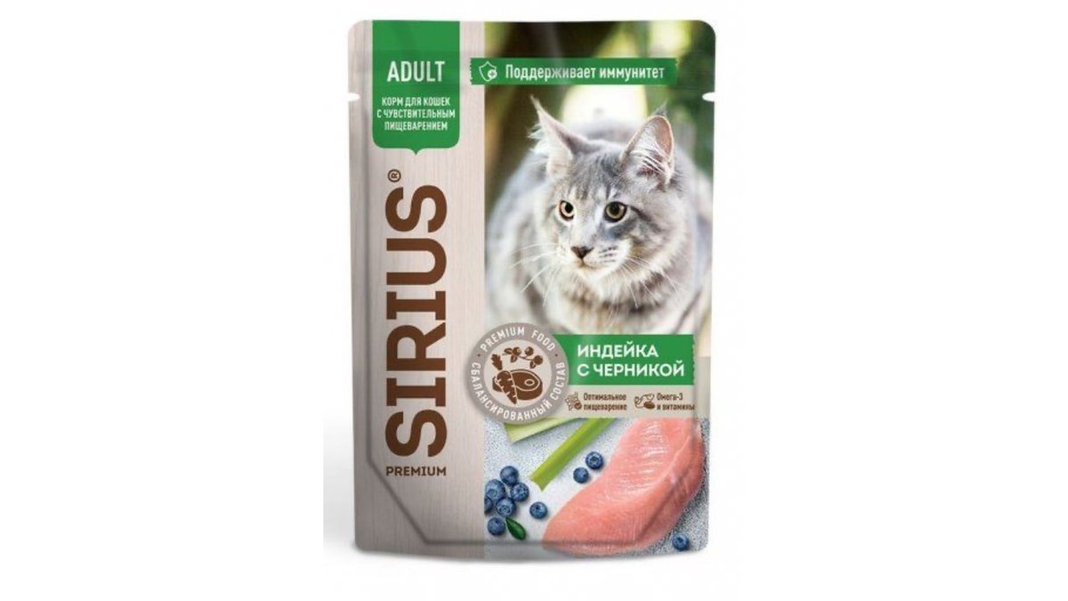 SIRIUS для кошек с чувств пищев Кусочки в соусе "Индейка с черникой"85 г