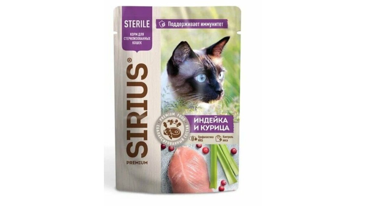 SIRIUS для стерил. кошек. Кусочки в соусе "Индейка и курица "85 г