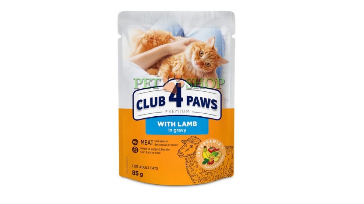 Club 4 Paws "С ягненком в соусе". влажный корм для взр. кошек, 0,085 кг
