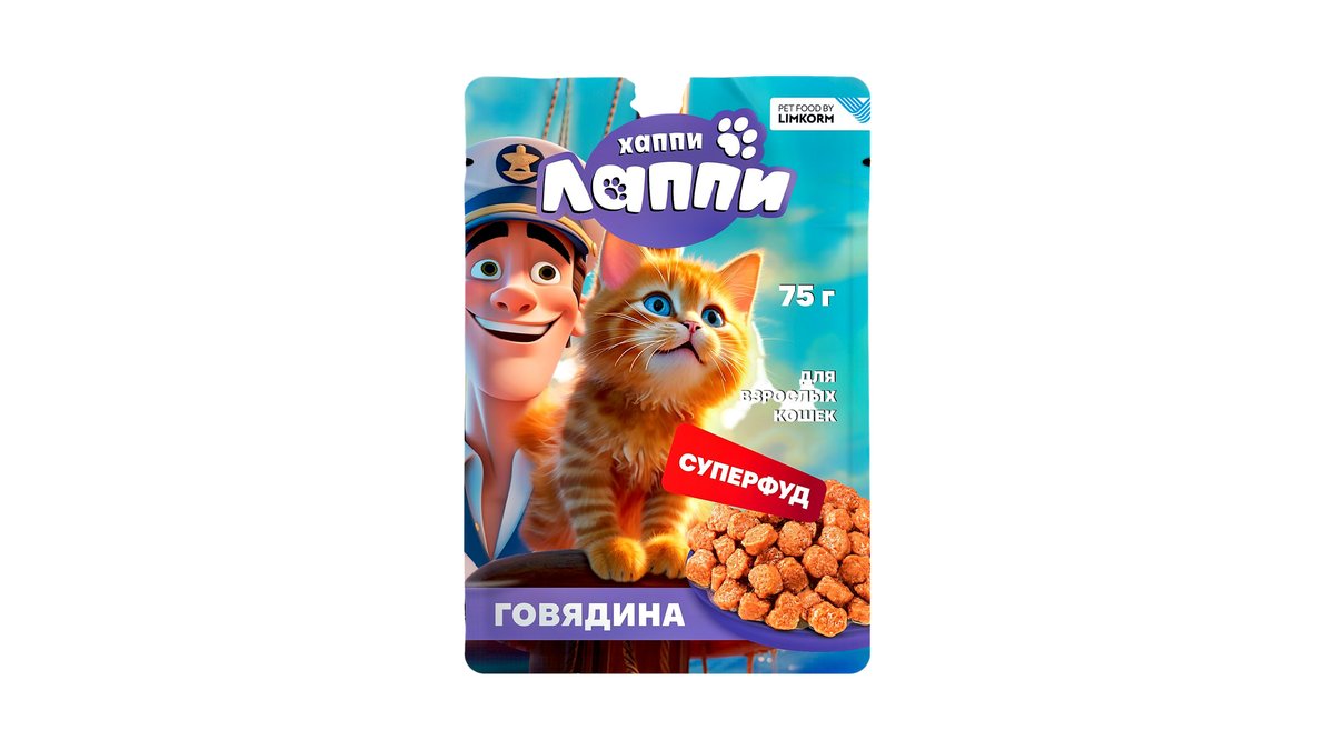 Хаппи Лаппи для взрослых кошек. Кусочки в соусе с говядиной 75 г
