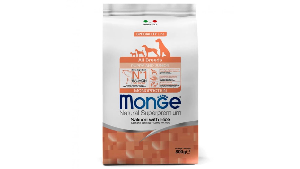 Monge special line All breeders Monoprotein Puppy and junior salmon and rise Лосось и рис
