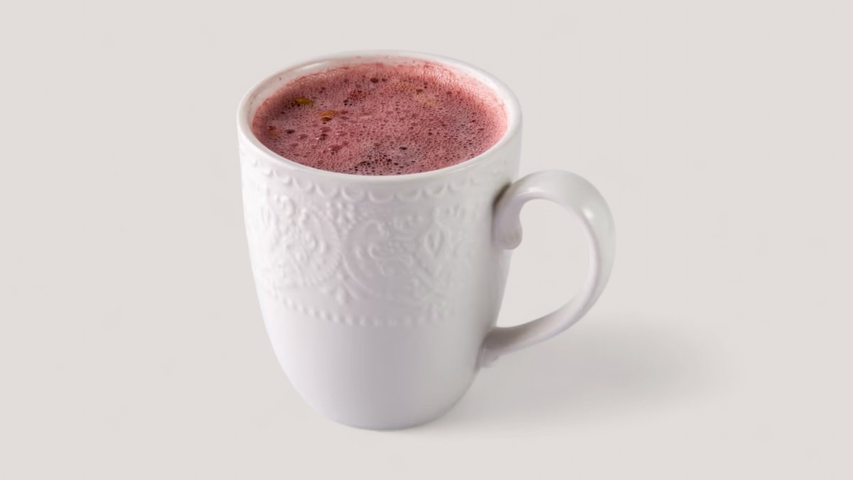 Без алкогольное красное вино, пюре клубники, сок граната, корица, бадьян, гвоздика, кардамон