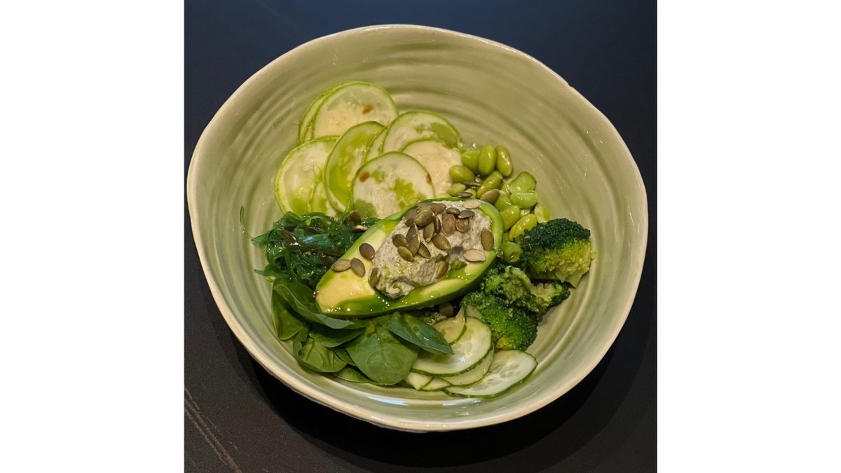 Авокадо, брокколи, чука салат, эдамаме, кабачки, огурцы, шпинат, тыквенный соус