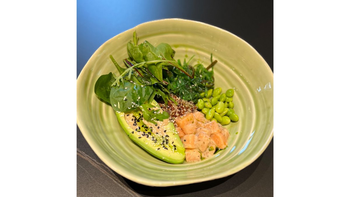 Семга, киноа, авокадо, эдамаме, чука салат, соус гамадари