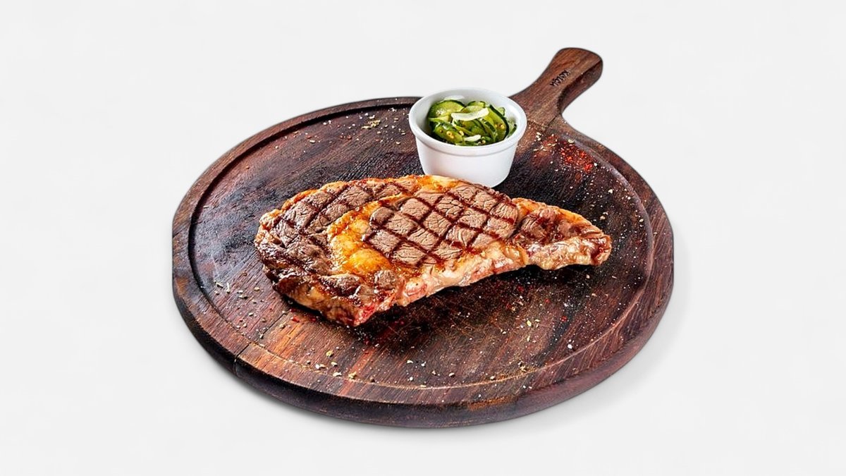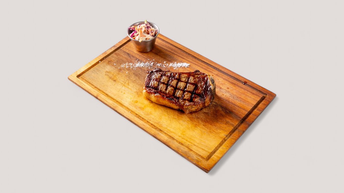 классический клуб стейк на кости- сочный и ароматный кусок говядины из короткой поясницы. Отличается ярким мясным вкусом и насыщенной текстурой. Подается с салатом Коул Слоу