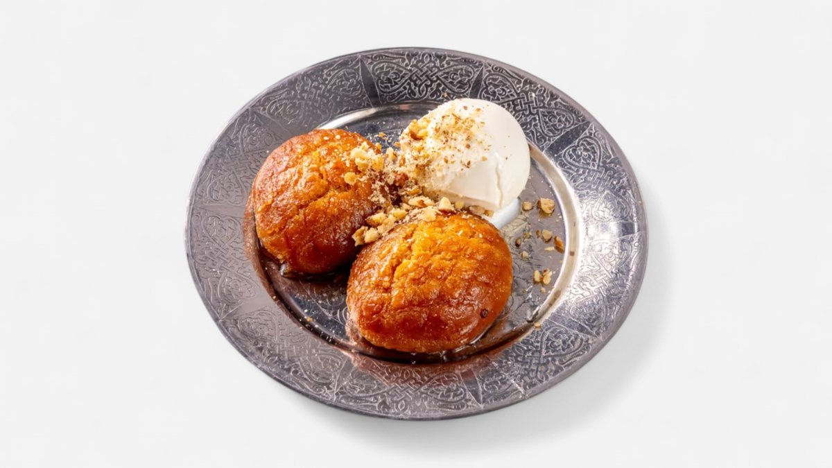 Турецкое печенье подается с шариком ванильного мороженого, посыпанного фисташковой крошкой