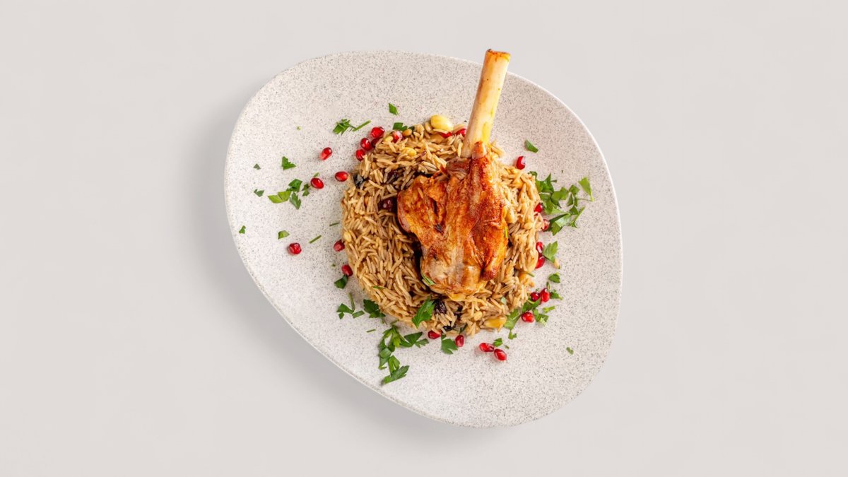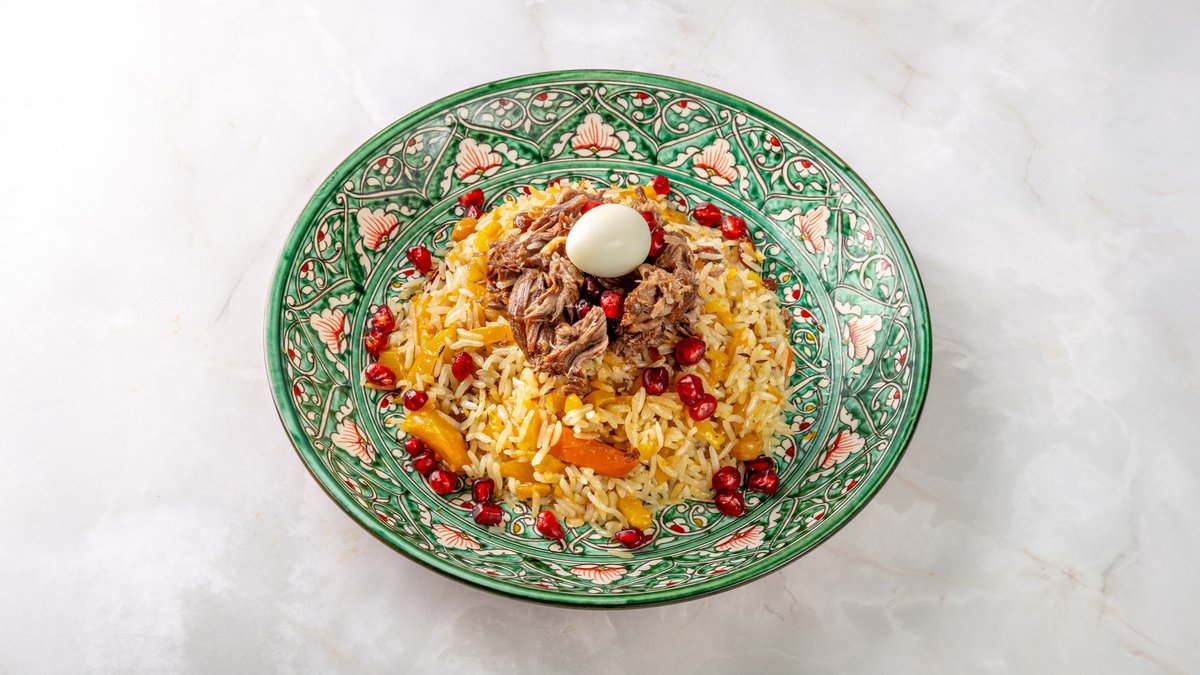 плов с сочным мясом ягненка,