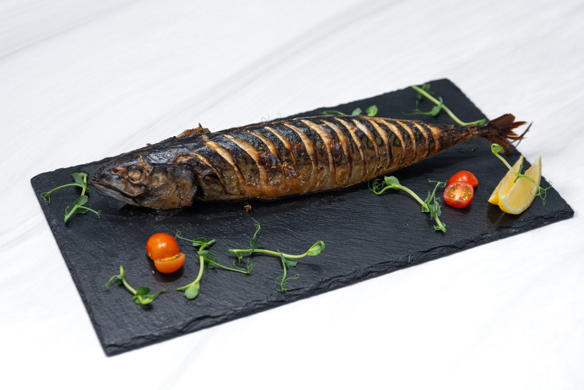 Скумбрия, помидор , огурец ,лист салата ,лаваш ,хлопанью