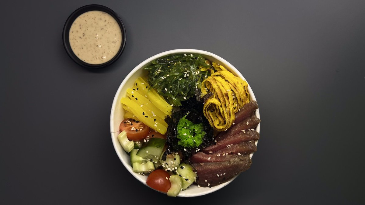 тунец, рис, дайкон, помидор ,огурец, томаго блинчик, чука, сельдерей 350 гр.
