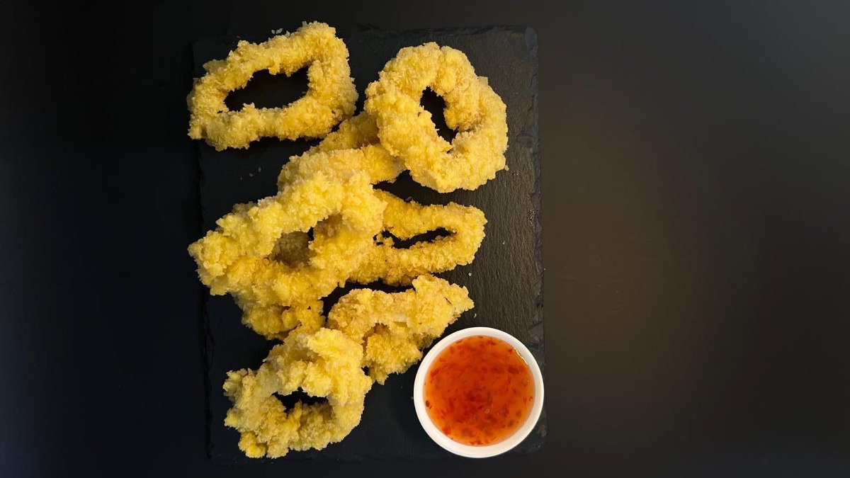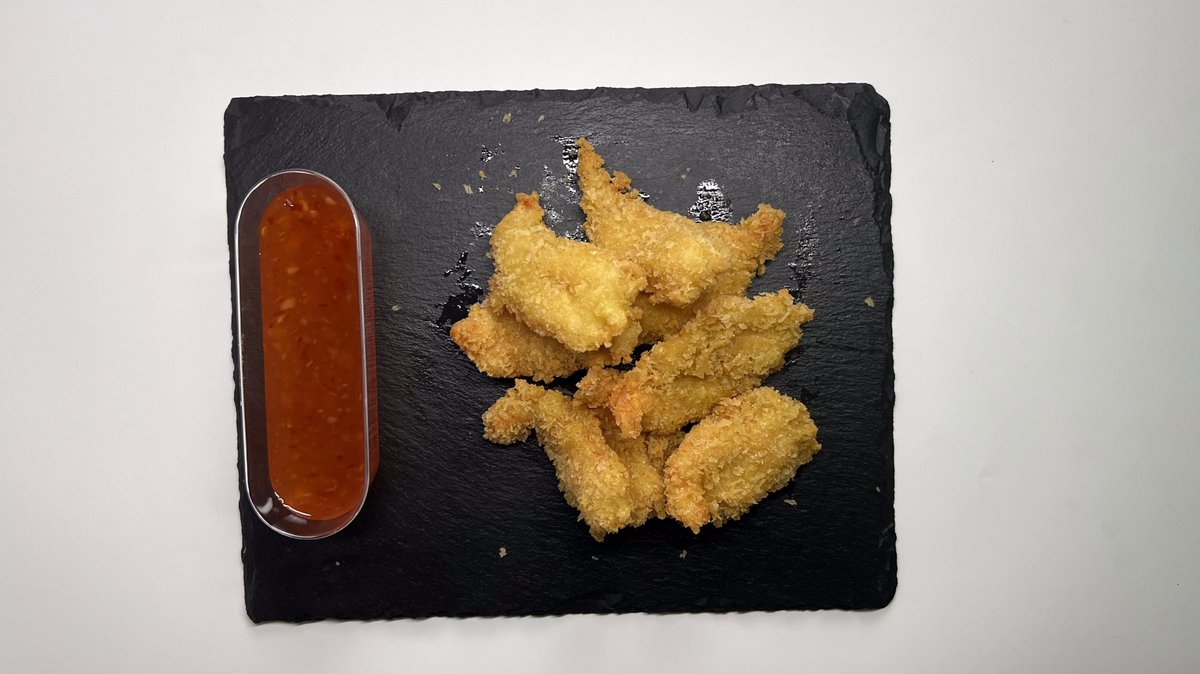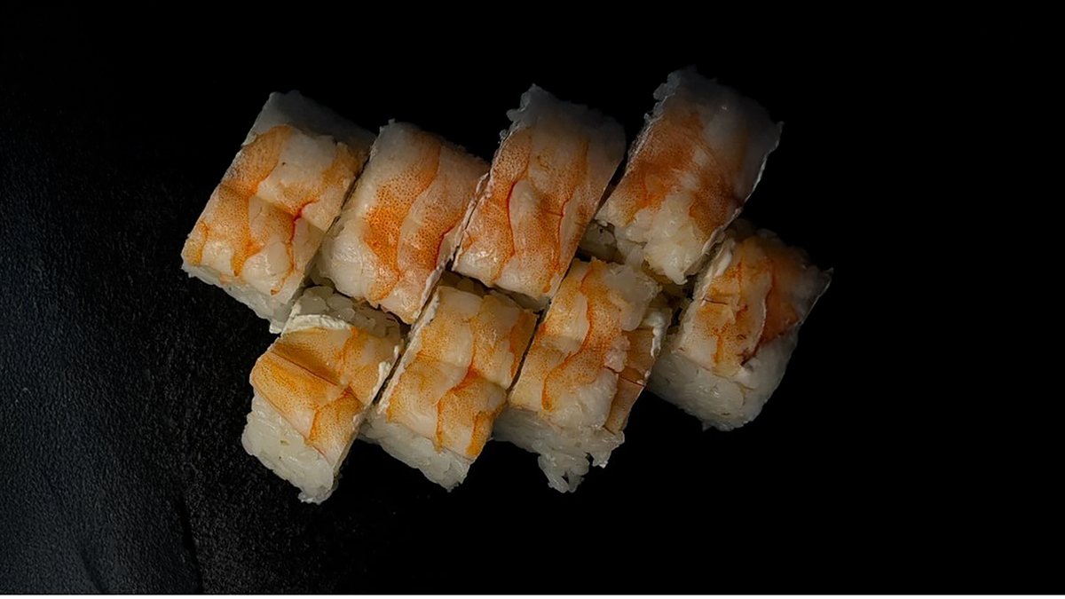 Состав: рис, нори, творожный сыр, огурец, креветка, кляр, панировочные сухари, соус свит-чили