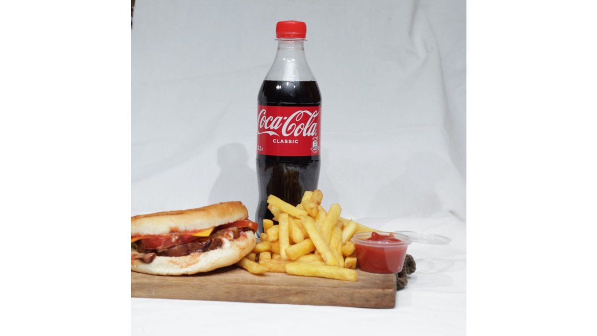 Чизбургер, картофель фри, напиток 500 мл, соус.