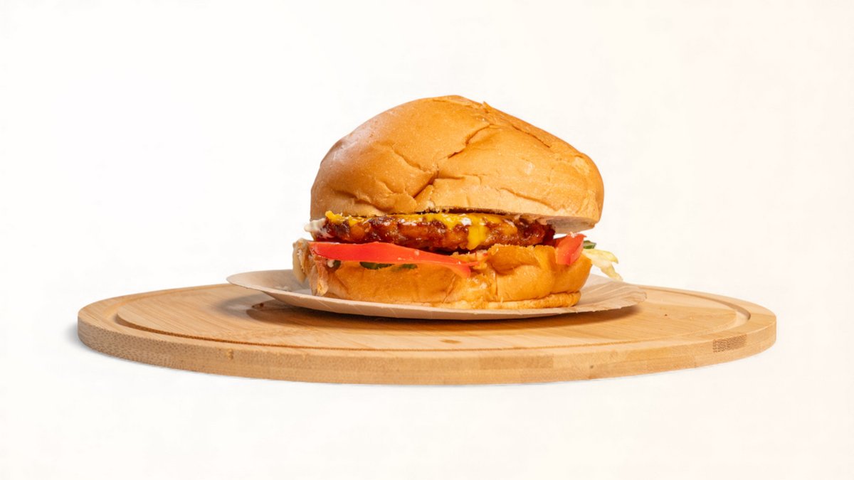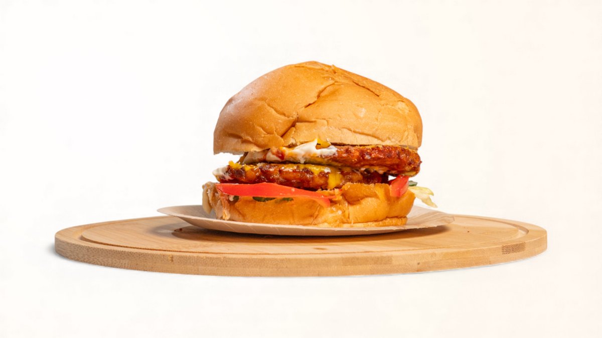 2 Куриные котлеты, свежий салат, двойной сыр Чеддер, свежие огурцы и помидоры, с фирменными соусами в пышной булочке.