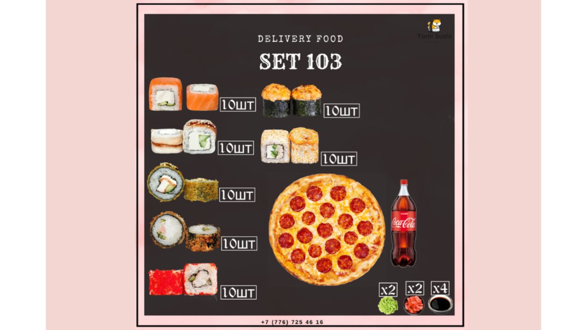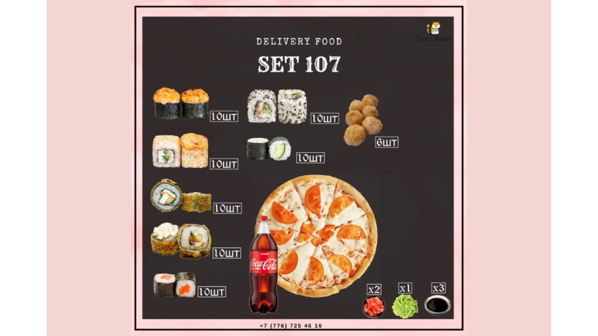 Mega Deals: Сет 112 (50шт🍣+пицца+Coca-cola)