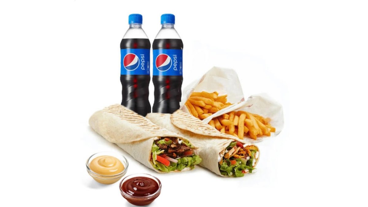 Средний донер 2 , средний фри 2, Pepsi 0,5л-2, 2 соуса в подарок