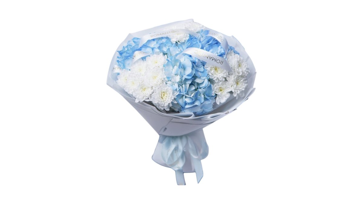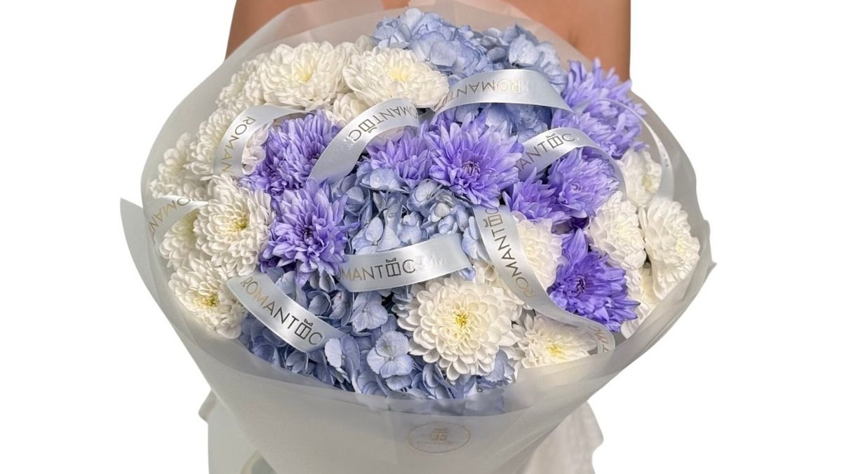 букет из гортензии и хризантемы