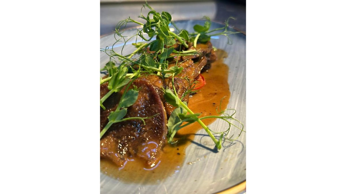 филе ягненка, огурчики маринованные в бурбоне, соус Colibri, зелень, специи