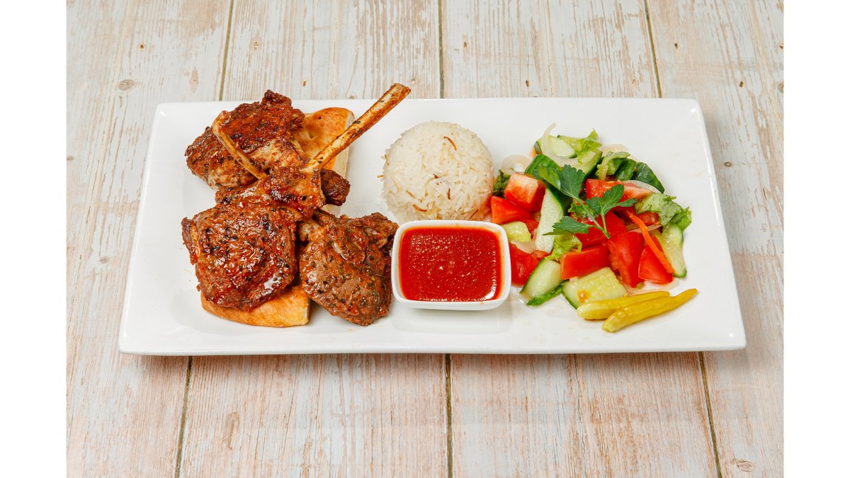 ребра баранины, рис, свежий салат, лук, турецкий хлеб и шашлычный çoyc. 300 г