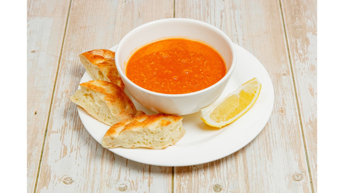 красная чечевица, сушеная мята, турецкий хлеб, лимон