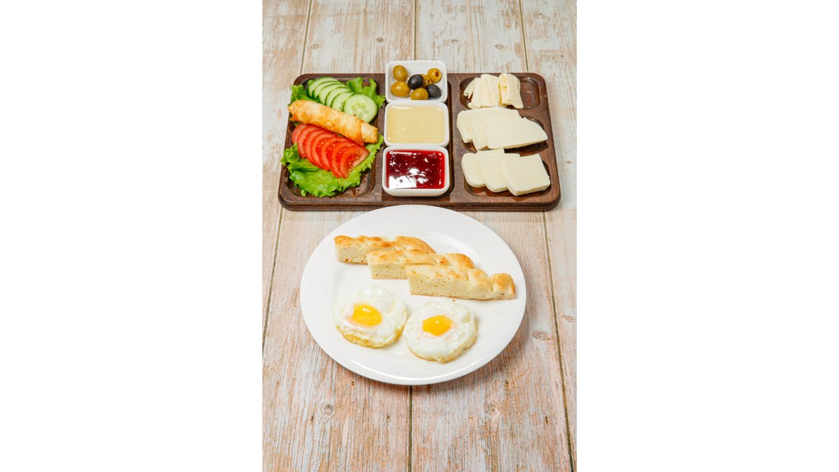 яйцо, сырные трубочки, помидоры, огурцы, турецкий хлеб, сыр брынза, сулугуни, маслины, мед, варенье, джем. 450г