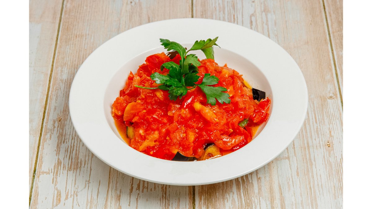 болгарский перец помидоры, баклажан, чеснок,оливкое масло, специи. 200 г