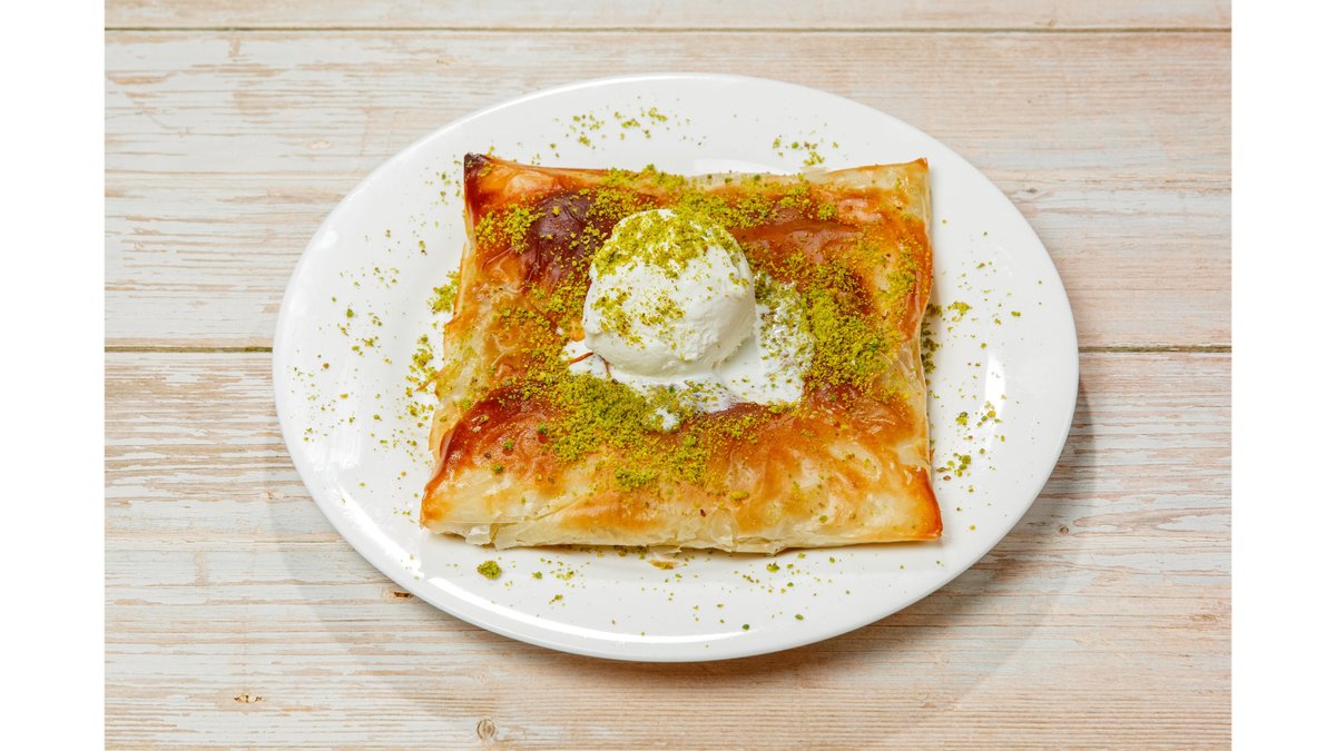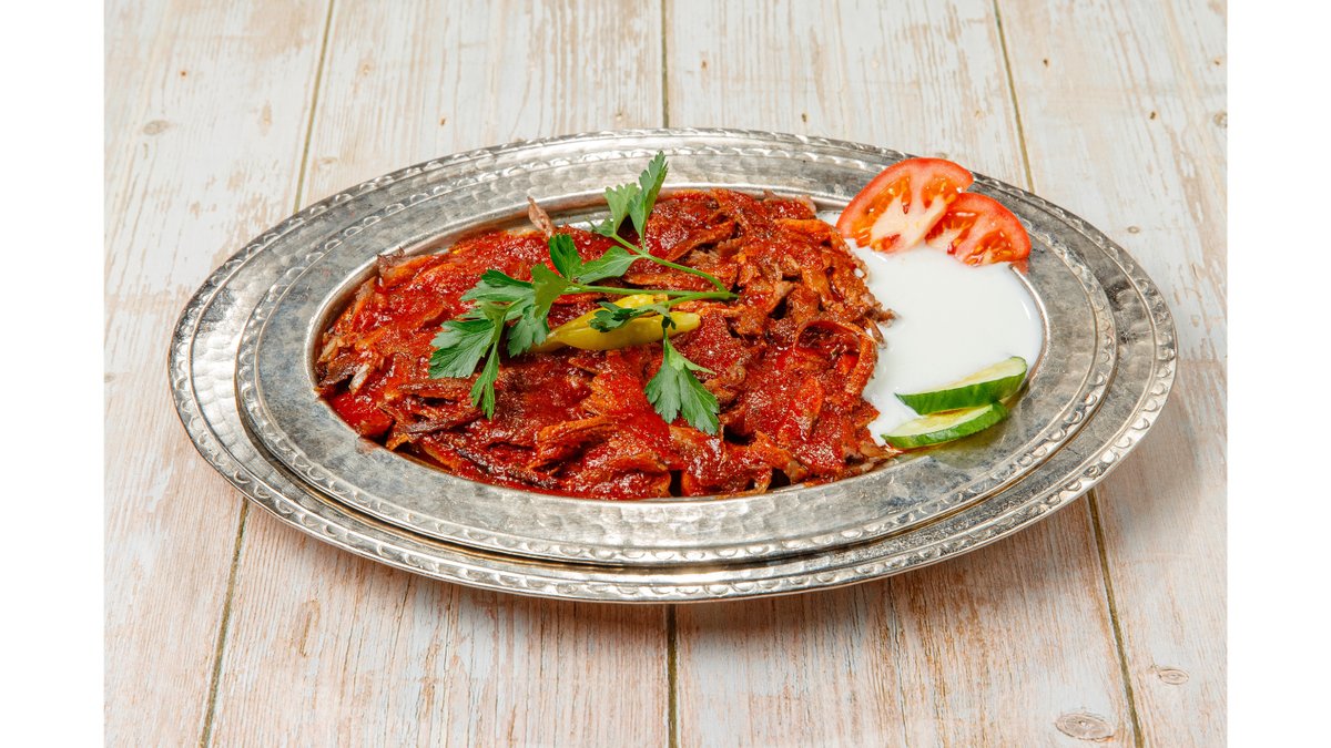 лаваш, рубленная говядина с курдюком, соус искендер и сузме