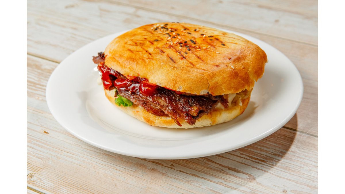 Рубленная говядина с курдюком, рис,салат из моркови,красная капуста, лук,турецкий хлеб и шашлычный соус. 450 г