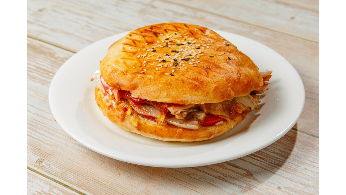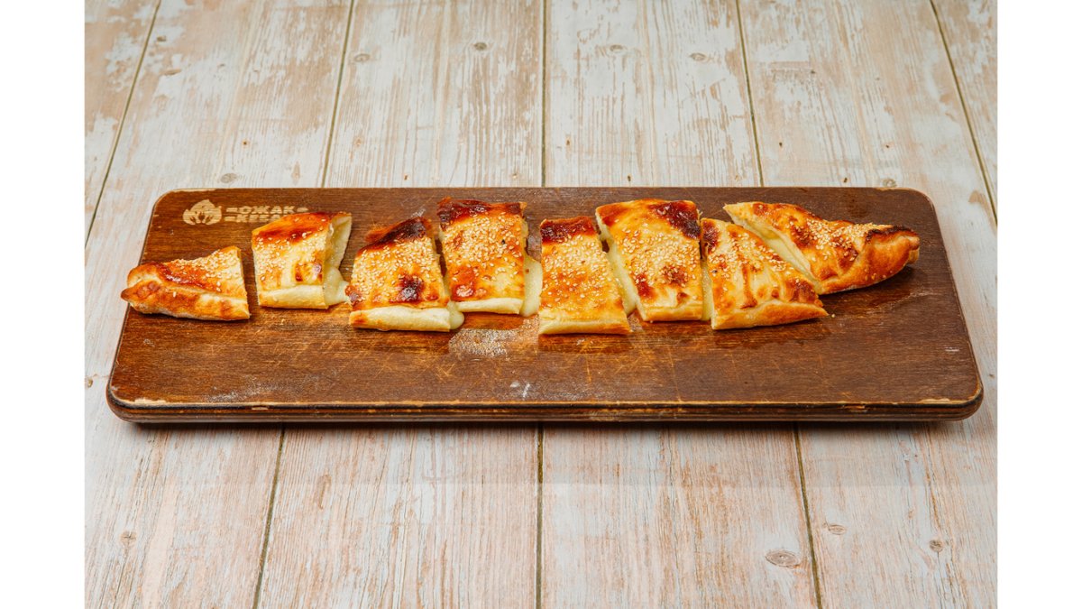 тесто, нарезная курица , сыр, кунжут , закрытое пиде. 400г