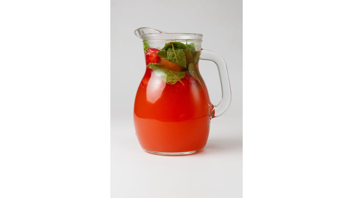 клубника,пюре маракуйи,лимоннный фреш,мята,сироп клубника,сироп маракуйи,лед,содовая