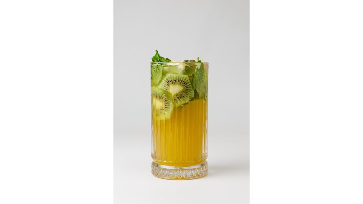 киви,пюре маракуйи,лимонный фреш,мята,сироп киви,сироп маракуйи,лед,содовая,лимон
