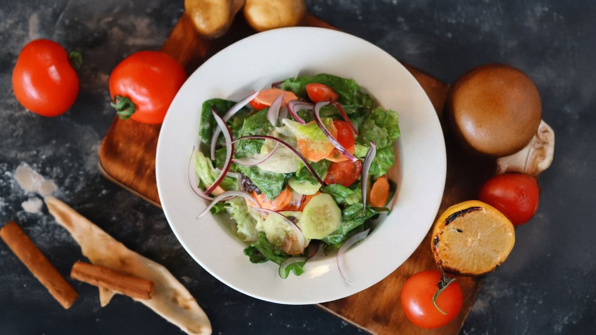 помидоры,огурцы,листья салата,лук,специи заправка на выбор майонез, масло. 250 г