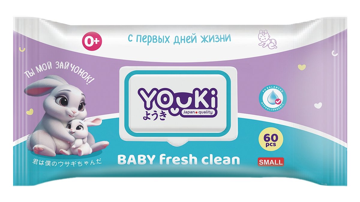 ВЛАЖНЫЕ САЛФЕТКИ YOUKI 60ШТ ДЕТСКИЕ