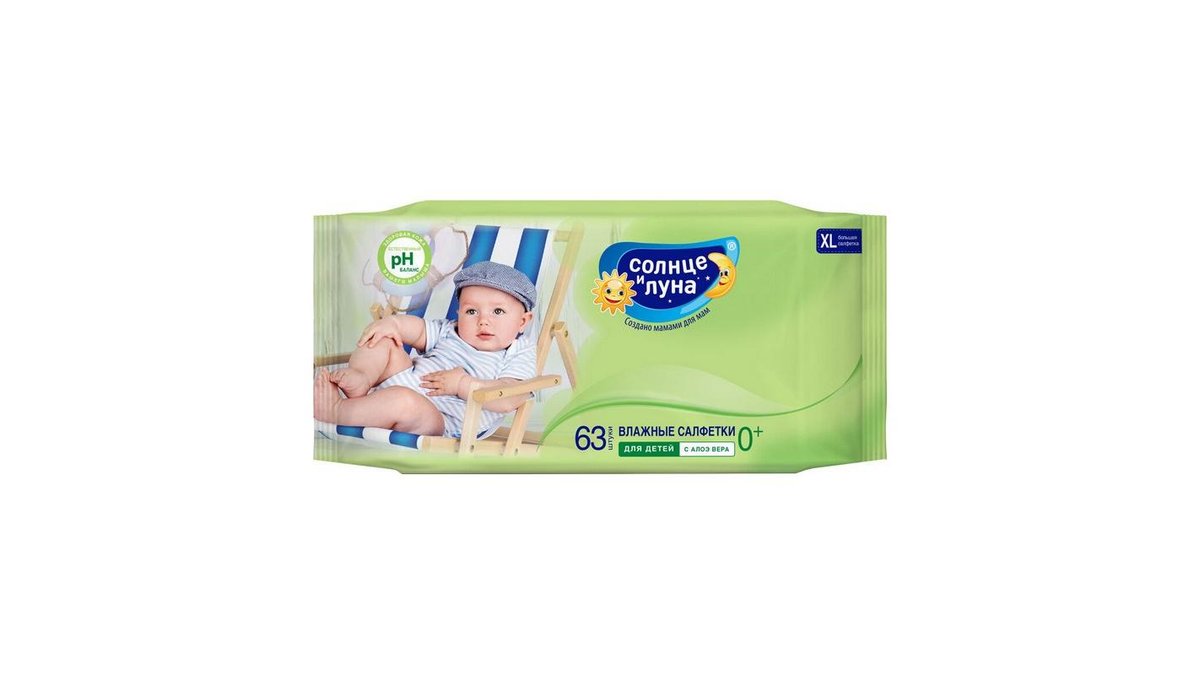 Влажные салфетки Солнце и Луна Алоэ 63 шт