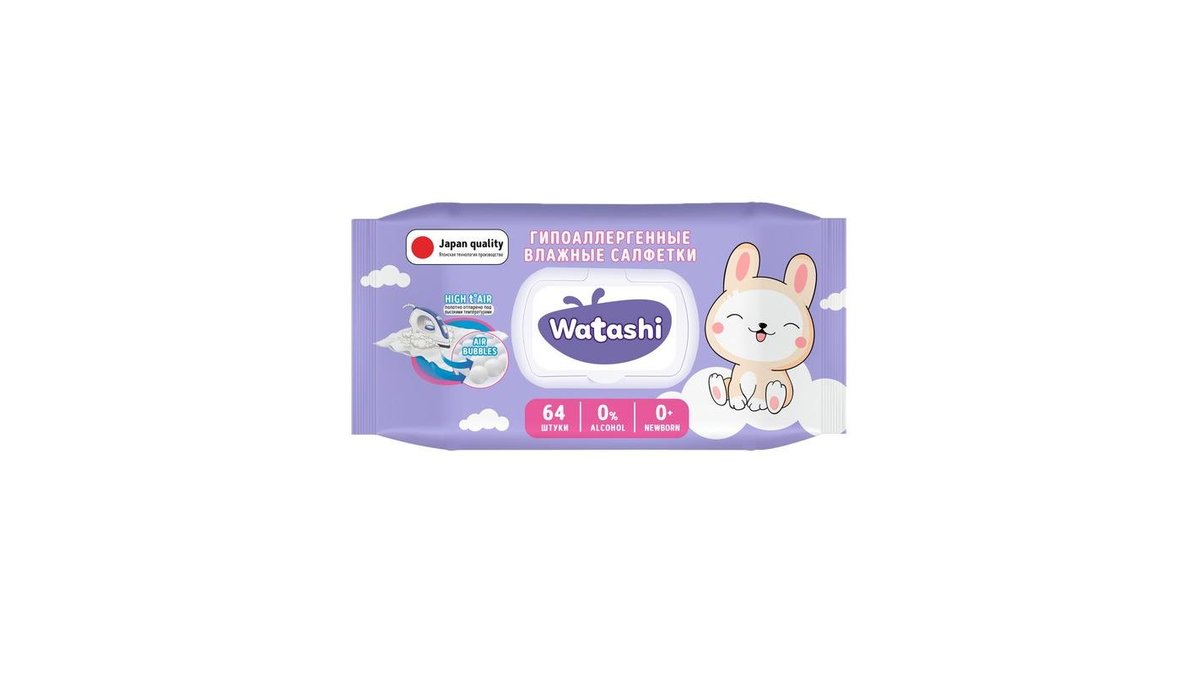 Влажные салфетки Watashi Air Bubbles 64 шт