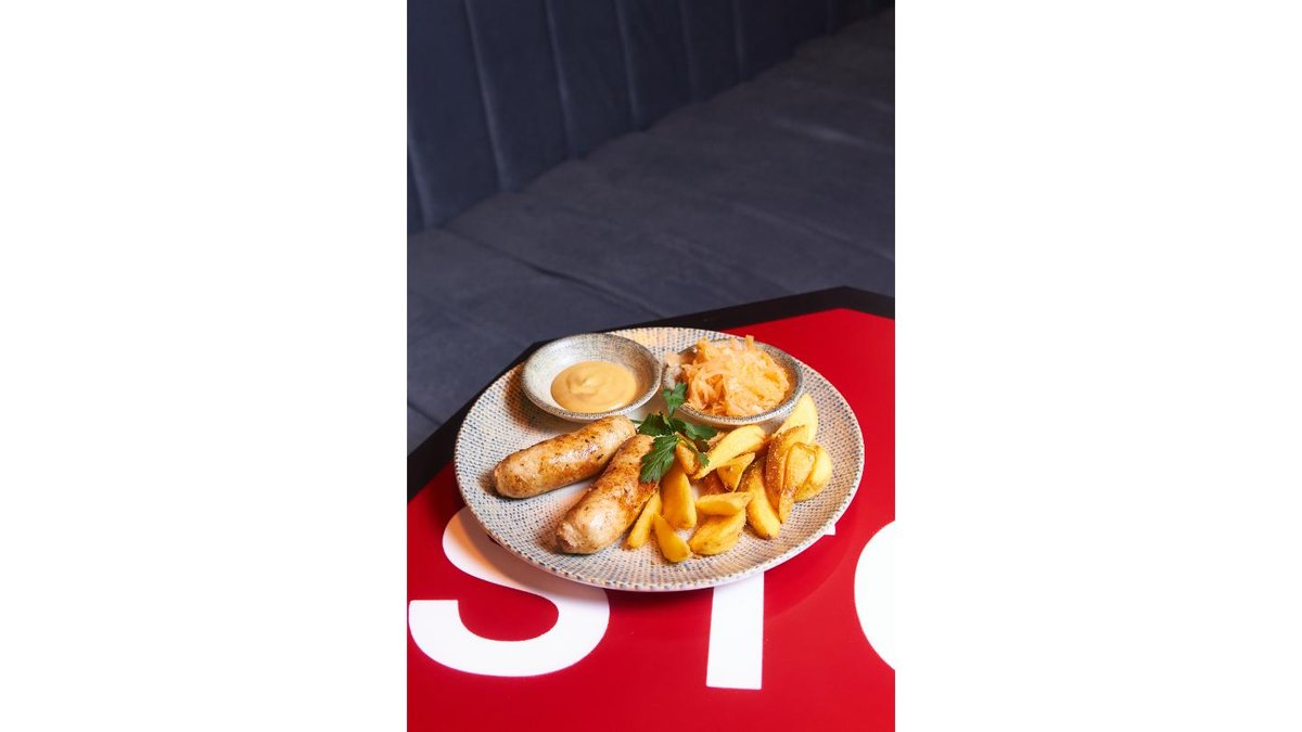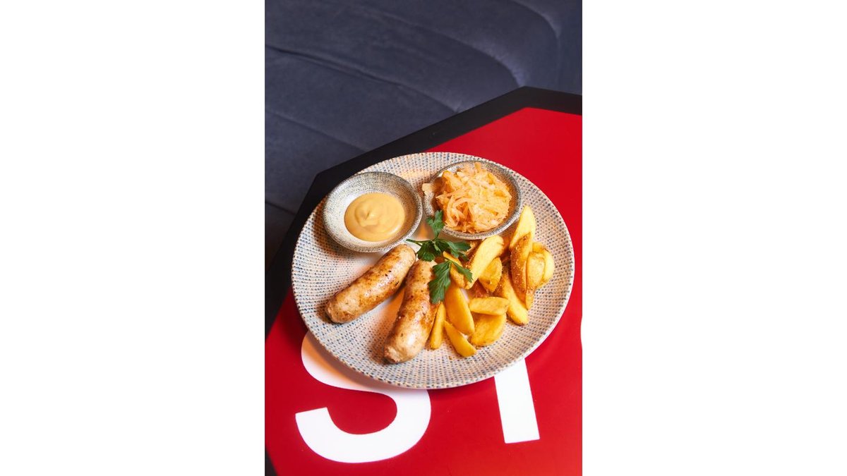 колбаски, карт.дольки, квашеная капуста