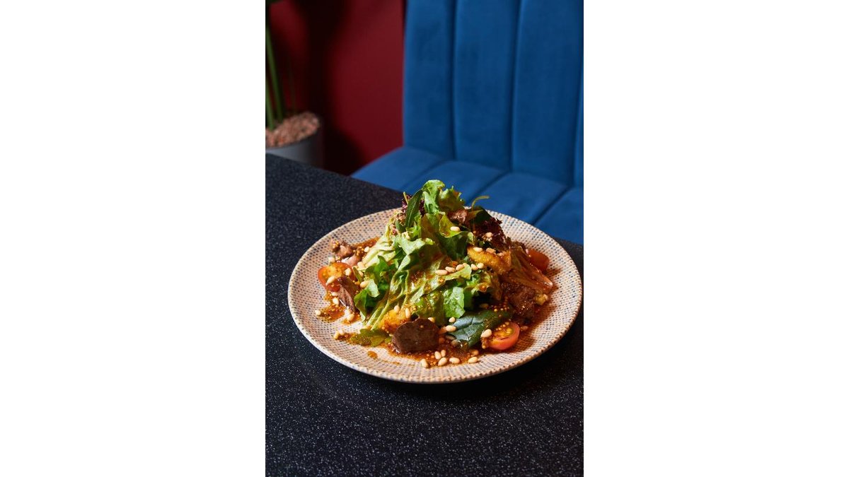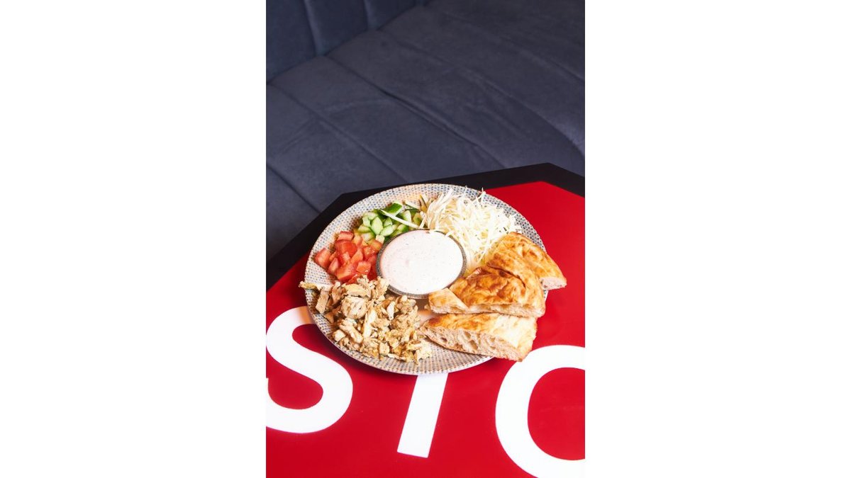 Мясо денер говядина, капуста, огурец , помидор, фирменный соус/Сиыр еті, шелпек, тұздық, қияр, қызанақ, қырыққабат