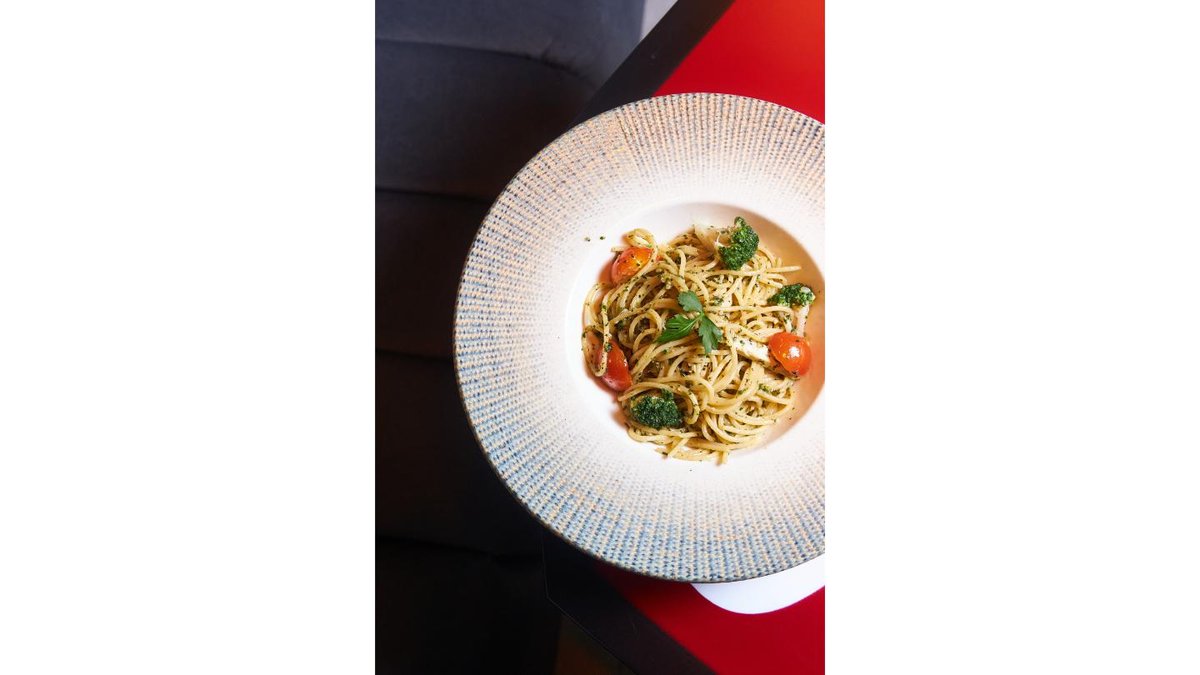 спагетти, курица, броколи, песто, чеснок, черри