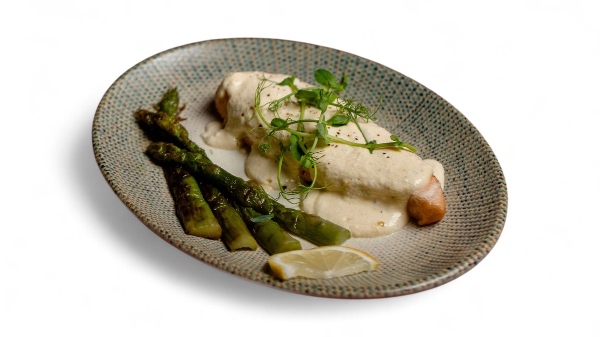 Семга со спаржей и сливочным соусом