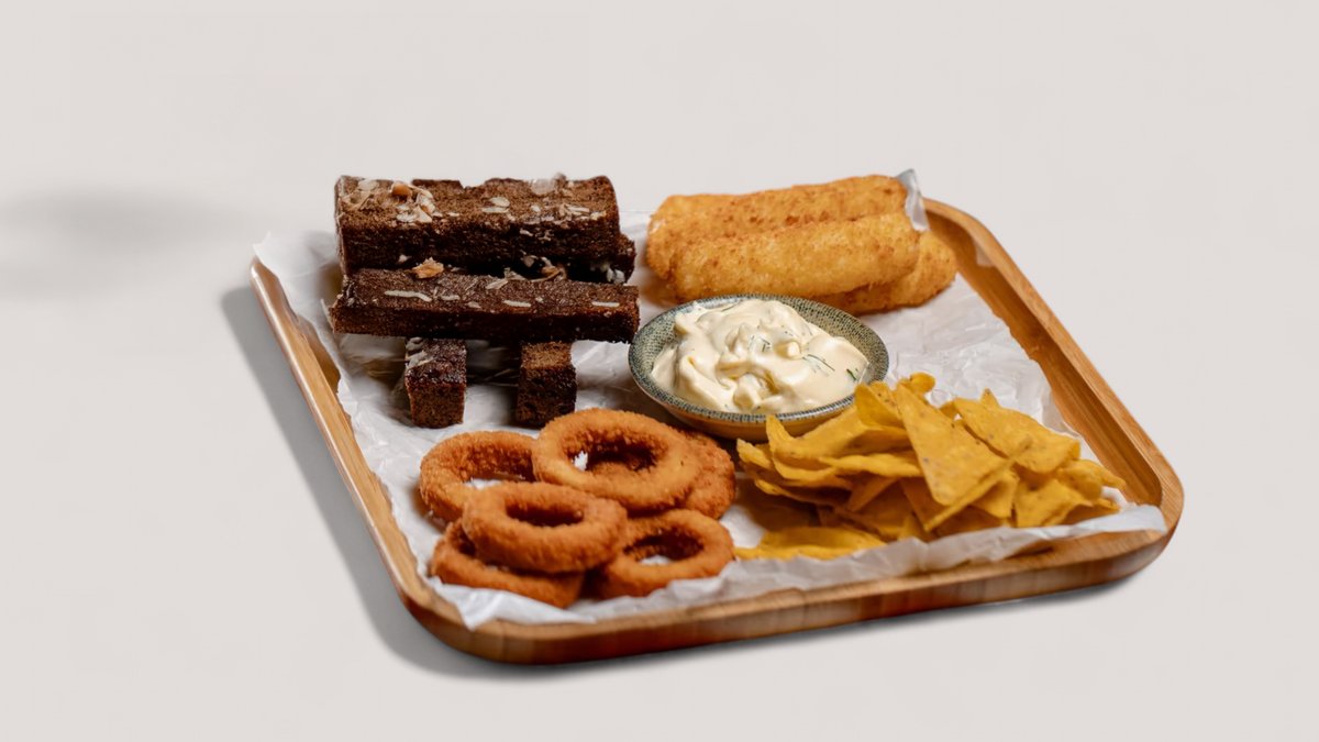 начос, луковые кольца, гренки, сырные палочки