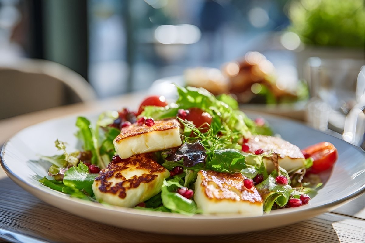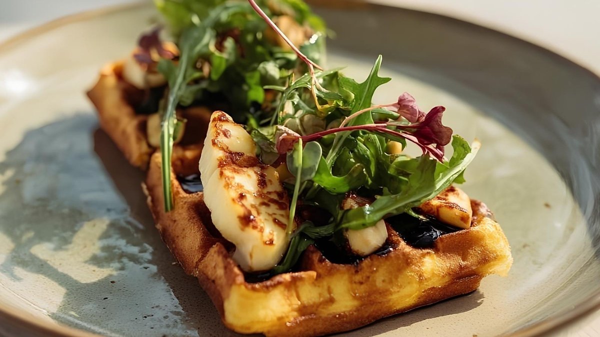 Вафельная брускетта с жареным халуми