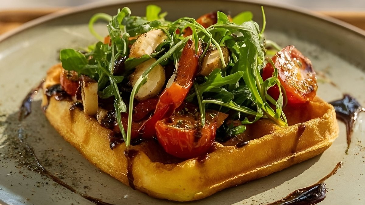 Вафельная брускетта с запеченным перцем и томатами